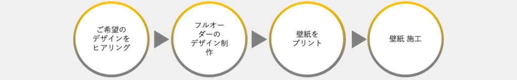 KABELabは、デザイン制作だけでなく、壁紙のプリントや施工までをトータルでサポートします。高品質な印刷機で丁寧に刷り上げ、発色の美しさや素材の安全性にもこだわっています。施工は経験豊富な職人が担当し、デザイナーと連携しながら理想の仕上がりを実現します。「誰に何を頼めばいいか分からない…」というご心配は不要です。私たちが最初から最後まで、責任をもってサポートいたします。概算費用はQ&Aにてご案内いたします。